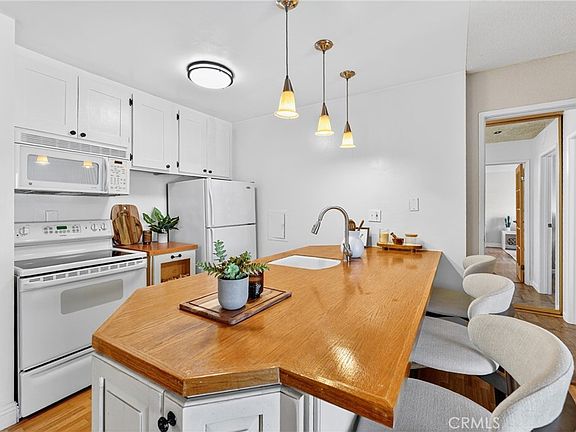 This bright, move-in ready 1-bedroom condo has been freshly painted and features newer flooring, a sunny dining area, and a roomy bedroom with French doors and a generous closet for added privacy. The kitchen has a large wooden countertop and plenty of storage. Enjoy abundant natural light throughout and the ease of living on the ground floor. Live like you’re on vacation at Park Ocean—this full-service complex includes:-sparkling swimming pool & spa, -men’s & women’s saunas, -tennis court, basketball hoops & fitness center, -BBQ areas and outdoor spaces, -a lobby with a sunken fireplace. This condo is tucked away from the PCH traffic, in a quieter, fresher spot. It’s pet-friendly and has 1 gated parking space, just steps from your door.