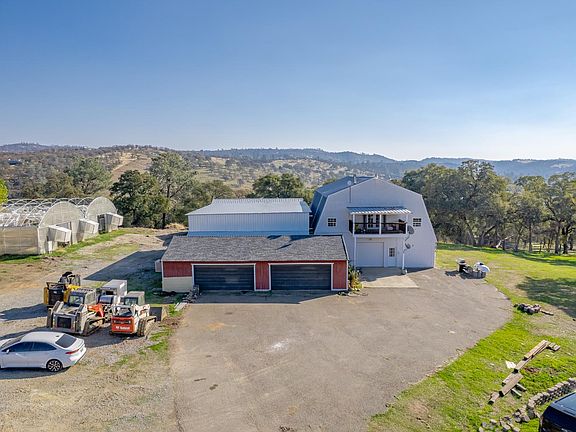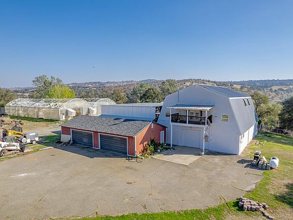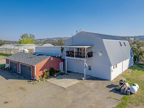 Experience refined country living on this extraordinary property, an exclusive gated retreat offering privacy, functionality, and charm. The permitted 3,216 sq. ft. barn-style residence blends rustic charm with modern comfort. The upper level features 3 bedrooms, 2 full baths, an office, dining area, two balconies, a wood-burning stove, and new flooring and paint. The lower level includes a full bath, extensive storage, workshop area, and horse amenities, ideal for agricultural or equestrian pursuits. Beyond the home, discover an 8,400 sq. ft. permitted greenhouse, outbuildings and barns, and a robust infrastructure featuring 200-amp single-phase and 200-amp, 230V three-phase power, a high-producing well, irrigation tanks, and a 2-inch line from Coon Creek. The property also includes a fenced livestock area (3-10 acres), automated gate, and asphalt access road. Take in the expansive views from the top of the hill where the current home sits, and imagine what possibilities could be. Live in the existing home while building your dream estate or create a guest or income property. One of only five exclusive parcels, this property offers the ultimate in privacy, productivity, and potential.