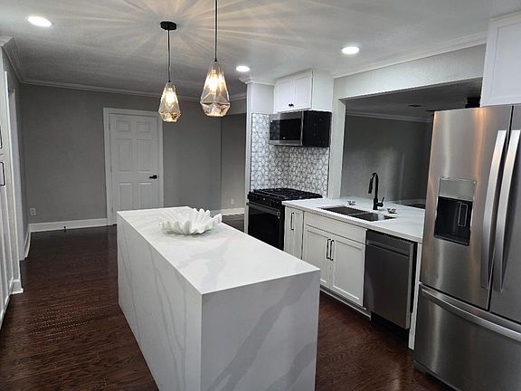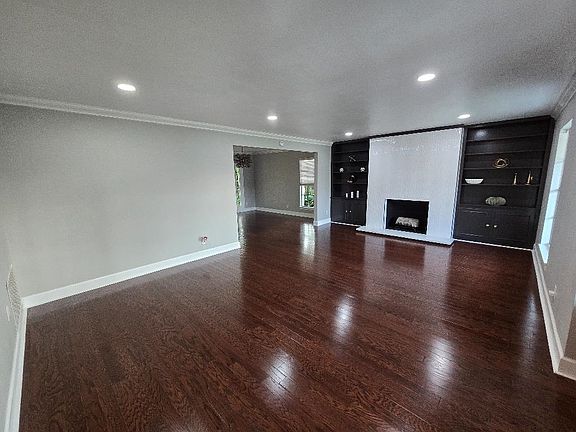 This stunning recently updated home features an open floor plan ideal for entertaining, with polished wood flooring, two living areas, both with newly finished fireplaces. The chef's kitchen is fully equipped with top-of-the line appliances, a cabinet-to-wall quartz and a waterfall island. A luxurious owner's retreat on the first floor includes a spa-like bathroom and three walk-in closets. Upstairs are three bedrooms and one full bathroom. One of the upstairs bedrooms has a uniquely updated full bath. Outdoors, enjoy a covered porch area for entertaining.