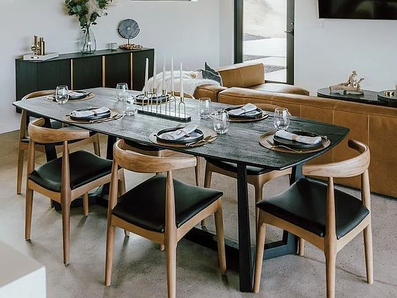 A new modern home perched on a peaceful hill looking over Pioneertown! This prime location allows you to hop over to Pappy and Harriet's and see a concert or grab dinner! If you are looking to Visit Joshua Tree, the park entrance is only a 20 minute drive. However, with a pool, hot tub, custom hammocks, firepit, games, multiple outdoor areas, this home has everything you need for a peaceful home.