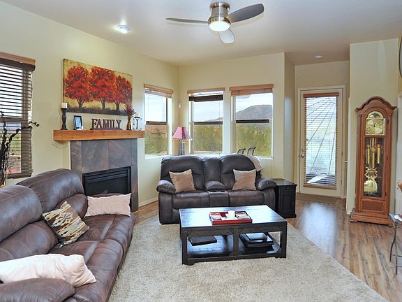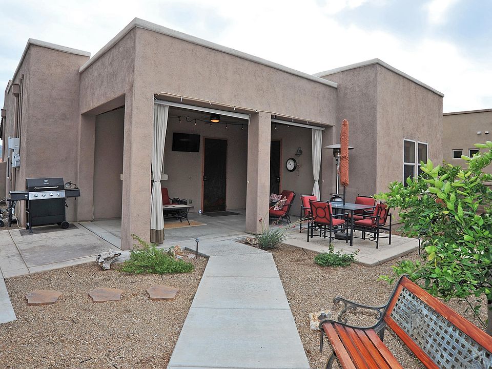 This Beautiful Civano home sits on a huge private lot w/ no neighbors behind or to the N side and offers Panoramic Mountain and Desert Views! The main house has 3 bedrooms, 2 baths w/ beautiful new wood-laminate and concrete floors throughout. You'll love cooking in your gourmet granite kitchen w/ SS appliances, and gas range ! Master suite has huge walk-in shower, double sink vanity and walk-in closet w/ new built-in shelving! The 432 Sqft casita above 2 car garage has a beautifully updated kitchen, phenomenal views from the covered balcony. Relax in the hot tub and enjoy the views. Side and Front yard is beautifully landscaped w/ 3 fruit trees, large seating area by firepit plus so much more! Come make this beautiful house, your new home!