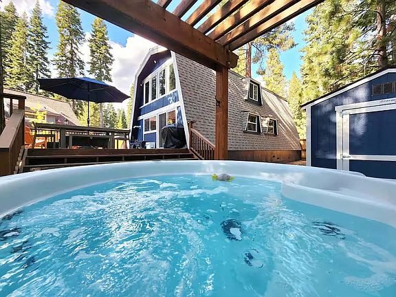 Amazing STR income for those investors! Get ready to check the boxes on your Tahoe home search! This 4 bedroom home has been dialed and designed to offer the perfect Tahoe Getaway. South facing wall of windows brings in loads of sunlight and sliders allow easy access to step outside and enjoy the oversized deck that is fit to entertain. Fully fenced backyard with plenty of room to play ... Horseshoes, Hot Tub, Storage Shed, and Gas Firepit included! Updated kitchen with solid granite counters, stainless steel appliances, and the tools you need to craft a great meal for family and friends. All 4 bedrooms have TVs and there's bonus loft with a license to 'chill' with its own TV and game/puzzle table and ambient fireplace. Level lot with plenty of parking in a dream location. Less than half mile to beaches and steps further to marina, restaurants, and mini golf. Back-country trails are blocks away to lead you into the wilderness. Hop in the car and find yourself at world class ski resorts in minutes. Offered mostly furnished so you can enjoy right away. Great primary home or a getaway that can be supplemented with STR income where permits are still available in Placer County. Schedule your visit today!