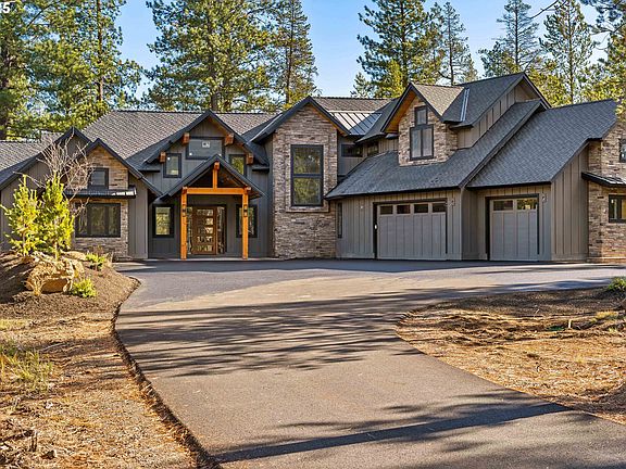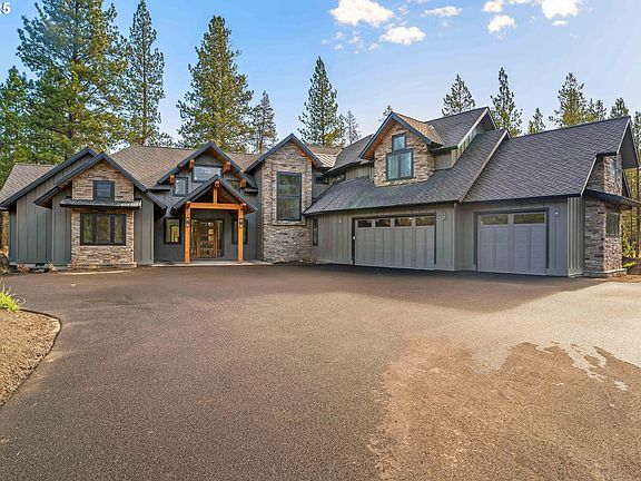 Experience refined mountain living in this extraordinary 38-acre estate. This 4412 sqft luxury residence combines timeless craftsmanship with modern elegance, offering 5 bedrooms and 5.5 bathrooms designed for comfort and sophistication. The main level showcases dual primary suites, including a retreat-like bathroom with soaking tub, zero-entry shower, double vanity, and walk-in closet. Gorgeous hardwood floors throughout, and soaring ceilings that enhance the home’s airy, sunlit atmosphere. The expansive great room features a gas fireplace and panoramic glass doors that seamlessly extend the living space to a covered outdoor patio, perfect for entertaining or relaxing amid the serene landscape. The gourmet kitchen is a chef’s dream, with soapstone countertops, stainless steel appliances, a gas range with pot filler, and a large island with an eat-in bar and walk-in pantry. Additional conveniences include a laundry/mudroom with cabinets, sink, ample counter space, a bench with storage and coat hooks, plus a main floor powder room. Upstairs, you’ll find two additional bedrooms—two with private en-suites—along with a spacious bonus room and an extra guest bathroom, ideal for family or guests. The three-car garage offers ample storage, and there’s even an option to add a pole barn for expanded utility. Conveniently located to Mt Bachelor, Sunriver Airport, and the Deschutes River, this property offers an unmatched blend of privacy, luxury, and proximity to adventure. Bordering Vandevert Ranch and Caldera Springs Resort. No HOA fees or restrictions.