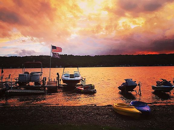 Enjoy spectacular views of Conesus Lake from your lovely deck! Gorgeous level, deep lot w/ beach frontage! Boathouse & 2.5 garage! Perfect home for family get togethers.