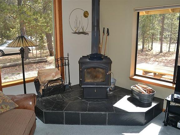 Adorable Chalet Cabin in the woods with lots of wildlife around. Close to Mt. Bachelor, High Lakes and Sunriver Resort. Close to community boat ramp for the Big Deschutes River. Heavily treed lot offering excellent privacy. Very clean with updated kitchen and baths, woodstove, ceiling fan, large deck, covered entry, finished garage, lots of room for RV's and toys. Newer furnace, paint interior and exterior.