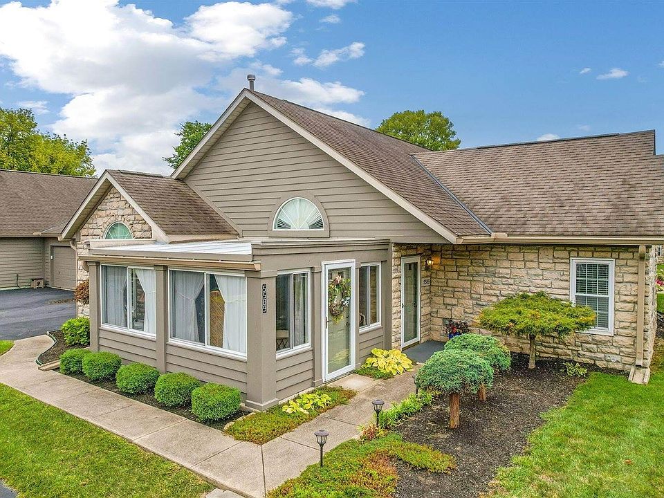 Step into comfort and convenience with this beautifully maintained one-story condo, featuring an oversized attached garage and a host of thoughtful updates. The renovated kitchen boasts elegant birch cabinetry, Corian countertops, and pull-out drawers for effortless organization. Enjoy peace of mind with major upgrades including a new furnace (2022), refrigerator (2025), air conditioner (2019), water heater (2016), and Rosati windows (2013) with a transferable warranty. Acrylic bath system in the owner's shower 2012. Relax year-round in the inviting four-season room or cozy up by the gas log fireplace in the spacious living room. Both bedrooms offer generous walk-in closets, providing ample storage and comfort. Located directly across from the pool and clubhouse, this home offers unbeatable access to community amenities. The HOA includes lawn care, Ext building Maint., Insurance, clubhouse/pool, and water/sewer charges. Located in Heritage Villas on the Links. Owners have direct access to Heritage Golf cart path. ✨ Don't miss your chance to own this move-in-ready gem—schedule your showing today!