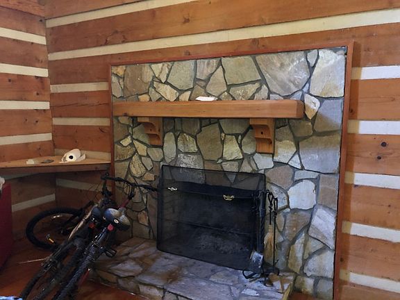 Private log cabin home with large wrap around farmers porch on a 1.5 acre lot tucked away in the woods in need of a little TLC. Features include open loft over looking family room with exposed beam ceiling, wood floors & stone fireplace. Kitchen with island & granite. Large owners suite with exposed beams, large closet and owners bath. Two additional bedrooms on first floor, laundry room & full bath with granite & tile. Farmers porch wraps around both side of home with a 3 season room on each side.