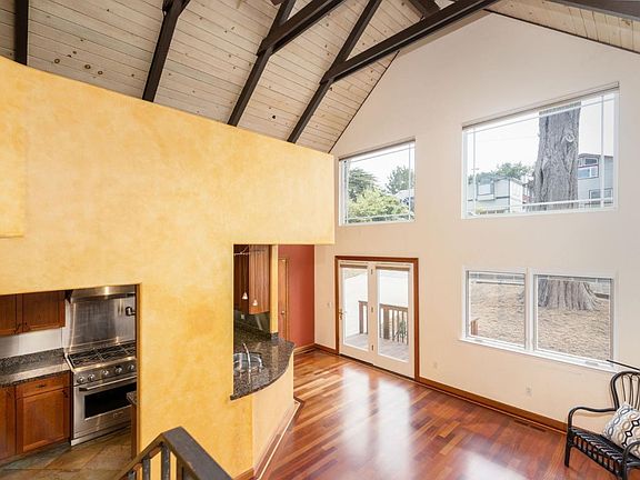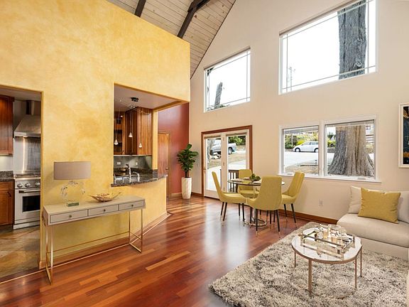 Updated cabin-style home in sunny back of Montara with both ocean and mountain views from the large entertaining-sized back deck. Located on a quiet street around the corner from miles of hiking trails, 2-story vaulted wood beam ceiling brings character and a great classic and open feel. The kitchen is efficient and high-quality with special design elements such as stainless walls and backsplash, a pot filler, 6-burner chefs range, and a gorgeous slate floor. The updated bathroom is outfitted with Restoration Hardware fixtures and a deep soaker tub, along with built-in storage. There are hardwood floors on the main level and stairs. The freshly carpeted loft, with 2 large view windows, can be a bedroom, office, or hobby room. The two-car attached garage provides easy access from the front to back yards, and into the home and kitchen. This is a great location for living a serene lifestyle near open space, community, and a local coffee shop.