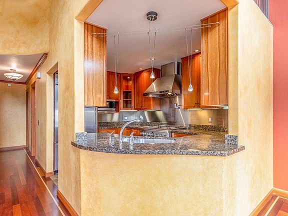 - Kitchen: Dishwasher, Oven Range - Gas, Countertop - Stone, Hood Over Range, Refrigerator