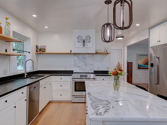 Nestled at the base of Old Mission, this beautifully remodeled ranch home is perfect for a small family or those looking to retire in style. Located within walking distance to top rated schools and just minutes from East & West Bay beaches, you'll enjoy the convenience of a short bike ride to downtown. This mid-century gem has been fully updated, offering a best-in-class floorplan with an impressive new kitchen, modern baths and ML laundry. Sunlight pours through brand-new windows into generously sized rooms, all featuring gleaming hardwood floors. The heart of the home is the eat-in island kitchen, perfect for casual dining or entertaining. The dining room is family-friendly, designed to adapt to your lifestyle. The lower level offers abundant storage, dedicated workshop and oversized family room with plenty of room for future expansion.