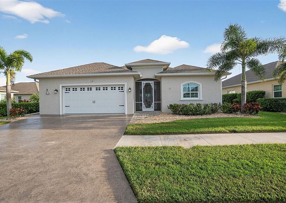 Welcome to Park Forest, a highly sought-after 55+ gated community offering vibrant living and exceptional amenities! This meticulously maintained 3-bedroom, 2-bath home is designed for modern Florida living with a bright and open layout. The heart of the home is the inviting great room, highlighted by tray ceilings, crown molding, and fully pocketing sliding glass doors that seamlessly extend the living space to the screened lanai. The open-concept kitchen and dinette area make entertaining effortless, while the private office offers a versatile space for work or hobbies. The spacious primary suite features a large walk-in closet and en-suite bath with a granite vanity and walk-in shower. 2 Guest bedrooms. Step outside to enjoy serene pond views from your screened lanai or paver patio. It's an ideal setting for morning coffee or evening gatherings. Professional landscaping enhances the home’s curb appeal, ensuring it looks just as beautiful outside as in. Living in Park Forest means peace of mind and a worry-free lifestyle. The HOA covers lawn care, exterior painting every 7 years, roof replacement every 17 years, cable, internet, and access to outstanding amenities: a clubhouse with year-round activities, heated pool, tennis, pickleball, shuffleboard, bocce ball, plus a fenced storage area for boats and RVs. Move-in ready and lovingly cared for, this home is a true gem. Come discover why life in Park Forest feels like paradise!
