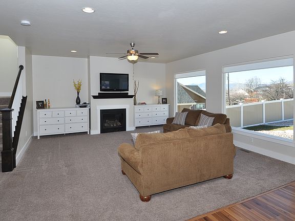 BEAUTIFUL NEW 2-STORY ON RARE SOUTH FACING 0.35 ACRE VIEW LOT high on east bench under Mt Timpanogos, but with a FLAT BACKYARD! BETTER THAN NEW: $53,451 in recent improvements (Blinds $1660, Landscaping $38,705, Vinyl Fence $9,849, Tuff Shed $3,237). Home Features Include HUGE GREAT ROOM, GRANITE KITCHEN, OVERSIZED PANTRY (with "Costco door"), LARGE MASTER SUITE & CLOSET, 9' CEILINGS (including 9' basement), 3RD CAR GARAGE. Owners are sad to be leaving their dream home for out of state opportunities. You'll love this AMAZING SETTING - Every Room captures amazing mountain, lake, valley views! Only one house away from the coveted Murdock Canal trail with endless walk/bike/run/parks. Excellent schools. Pressurized Irrigation and High Effic Furnace for LOW UTILITY BILLS. Professional landscaping includes cozy patio paver and gas fire pit area, decorative rock walls, low maintenance sprinklers with drip system in beds - only thing left to do is select shrubs/trees!