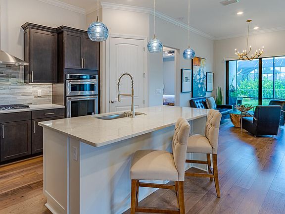 Fenced yardBrick facadeLarge islandPartial lake viewsExtended screened lanaiQuartz countertopsCeiling fans