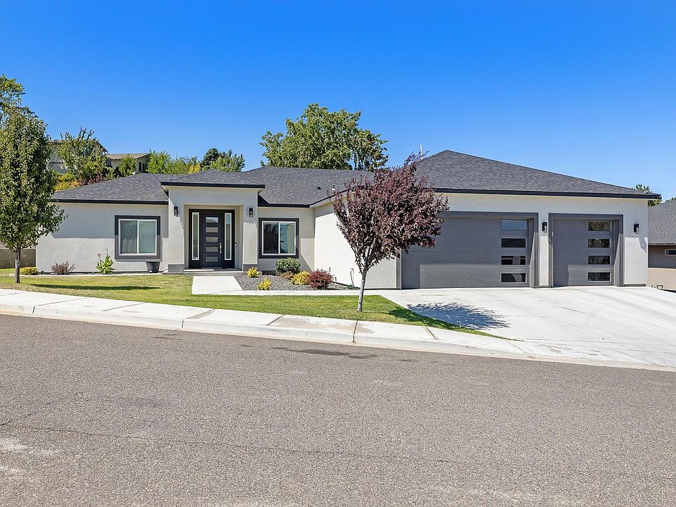 Introducing this stunning one-story rambler in the desirable Sunrise Ridge neighborhood. Built in 2020, this modern home boasts high-end finishes and an open concept layout, perfect for those who appreciate contemporary living. With over 2,500 square feet of space, this home offers ample room for comfortable living. As you enter, you will be welcomed with a stunning foyer. This floor plan is open with split bedroom design. Living room, kitchen, and dining room all flow together. Featuring 4 bedrooms and 3 bathrooms, this home provides plenty of space for a growing family or for hosting guests. Inside, you'll find a cozy fireplace, perfect for those chilly evenings, and high ceilings that create an airy and spacious atmosphere.The flooring throughout the home includes a mix of beautiful vinyl flooring, carpet and tile, adding both comfort and style. This home has quartz countertops in the kitchen, laundry room , and all three bathrooms. The exquisite, huge kitchen features a perfect kitchen island, contemporary style custom cabinets,huge walk in pantry, under cabinet lighting. The luxurious primary suite is complete with a stand-alone tub, perfect for unwinding after along day.The Master suite also features huge walk in closet and enormous dual vanity , walk in shower and a tub combo. The large laundryroom has a sink and counter working space leading into stylish built in mud bench. The spacious 3-car garage ensures that you have plenty of room for all your vehicles and outdoor toys. Situated on a corner you'll have plenty of space for outdoor activities and entertaining. The covered extended patio offers a perfect spot to relax and enjoy the beautiful surroundings.You will be amazed with decorative curbing throughout entire property.This home has it all and is move in ready. Amazing location just minutes to hwy, hospital, schools , stores , parks etc. Don't miss out on this incredible opportunity to own a like-new home in a sought-after neighborhood. Schedule a showing today and experience the luxury and convenience that this home has to offer.