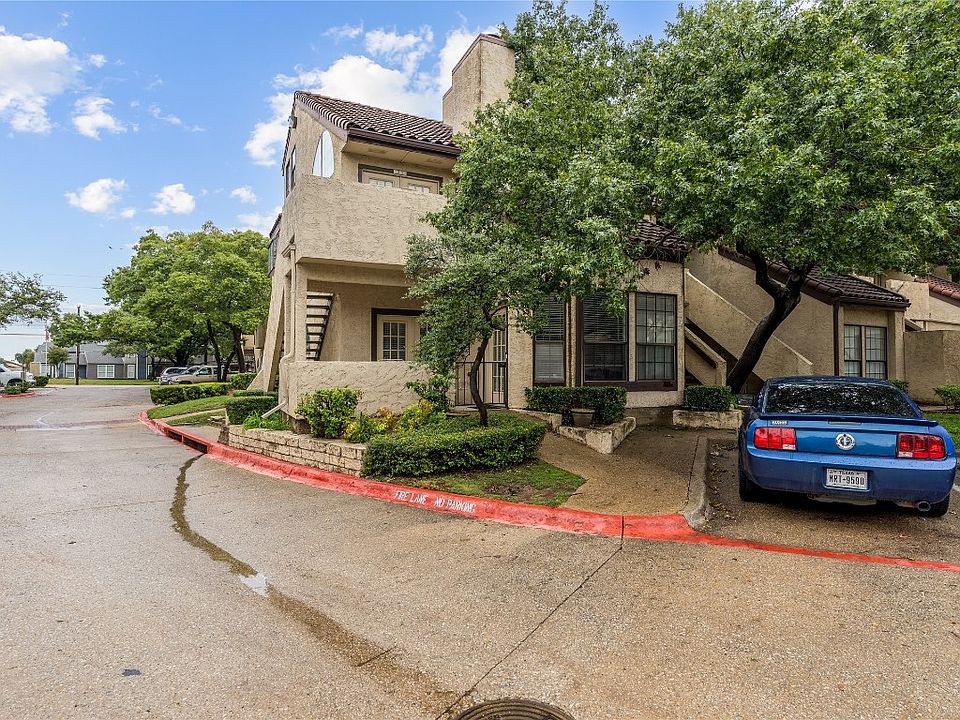 Do not miss this beautifully updated Mediterranean style villa! This 1st floor, 2 bed, 2 bath, single level corner unit condo is centrally located and features a wonderful patio entry that faces the pool! Large living area with fireplace. The private attached garage is hard to find! Great shopping, nightlife and entertainment nearby. Easy access to Dallas North Tollway and 635! New AC 2022! Sale can include any of the furniture and or appliances the buyer wants in the home.