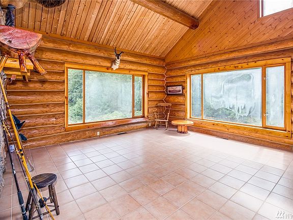 Finish the Dream! This custom 3000+ sf log home has a fully finished main floor living area. Large open kitchen with granite counters custom hardwood cabinets, opening to the living room with soaring vaulted ceilings anchored by the massive stone fireplace. Upstairs is fully framed, wired and plumbed, with some of the materials and fixtures to finish. Unfinished daylight basement, with full height ceilings. Located on almost 10 acres with fully fenced pasture, and outbuilding Rare opportunity.