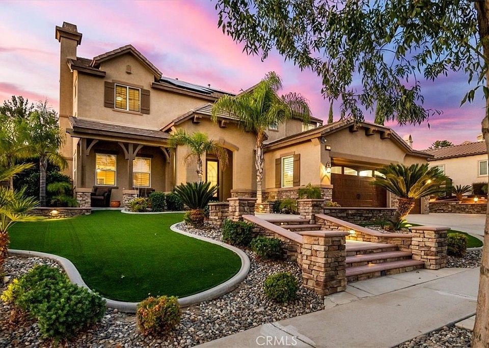 STUNNING! EXTRAORDINARY! GORGEOUS!! Just a few words to describe your new home!! Every square foot of this property is tastefully designed, updated and maintained. This house is the definition of "Turnkey" Combining luxury and comfort this house aims to please all! With 4 bedrooms and 3 bathrooms this residence has been meticulously crafted with both modern updates and timeless sophistication. Step inside the double leaded glass front doors into the formal entry with soaring 2-story ceilings and gorgeous wrought iron staircase, and real wood flooring that leads you through the home. To the left of the entry is the formal living room with handsome fireplace and an abundance of natural light. Beyond the living room is a space for a formal dining room or use as a bonus room, as the current owners have. With custom glass sliding doors to separate the spaces, this room can truly be whatever you need. There is also an office/den downstairs with full bathroom. Now to the piece de resistance...the KITCHEN!! This space has been thoughtfully updated with high end custom cabinetry, stainless steel appliances, quartz counter tops, coffee bar with beverage refrigerator and opens to the spacious family room and breakfast nook! You will truly fall in love with cooking in this kitchen! The family room offers custom electronic blinds, fireplace and built-in cabinets. The backyard is an absolute oasis and features salt water pool with spa, Palapa with 7 burner BBQ, kegerator, surround sound, fire pit area, large covered patio area with TV mount, custom dual trampoline, shed and possible RV parking. The primary suite is a serene escape with updated spa like bathroom that exudes relaxation. There are 3 additional over-sized bedrooms upstairs and additional full bathroom. Located within the Etiwanda school district with highly sought after schools, do not delay in seeing this home in person. Did I mention paid off solar panels?!! There is also EV charger in the garage. Do not miss this one!
