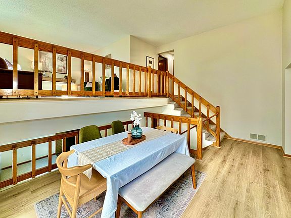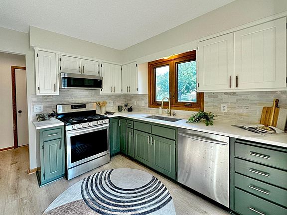 Come see this beautifully updated home in an incredible location within award-winning Mounds View School district! The Villas of North Point community is walking distance to parks and spectacular walking trails. With 3 beds and 2 full baths, this home has a very functional layout. Updated kitchen on main level with 2-tone cabinets, quartz counters, Stainless Steel appliances/sink, and custom tile backsplash. Luxury plank flooring throughout, with life-time warranty. New paint and carpet throughout. Updated windows as well! Dining room off the kitchen opens to a spacious covered deck and multiple options for gardens and plants. Attached oversized two car garage with plenty of space for storage. Just move in and enjoy!