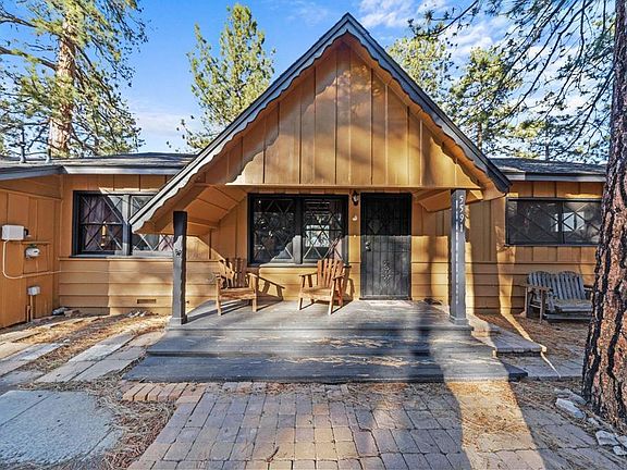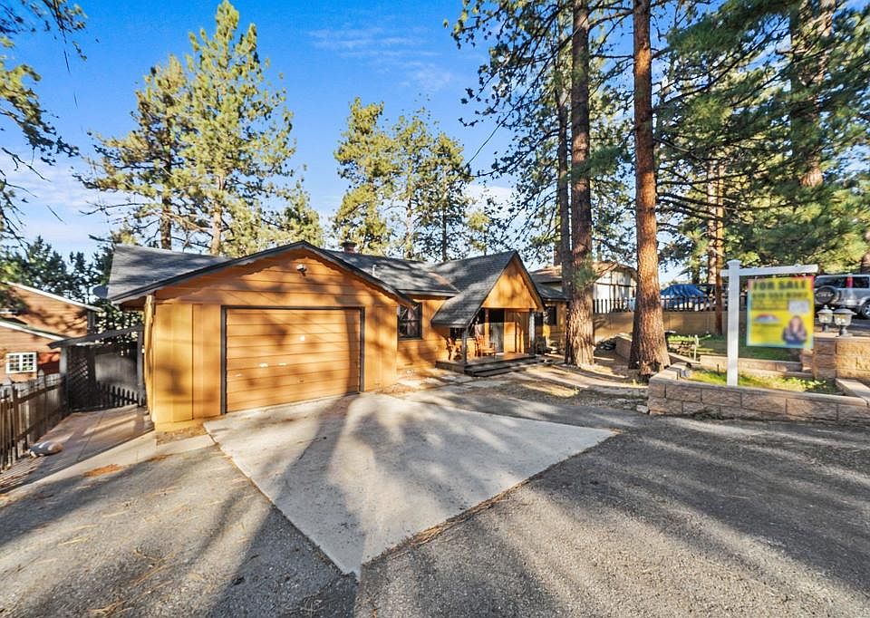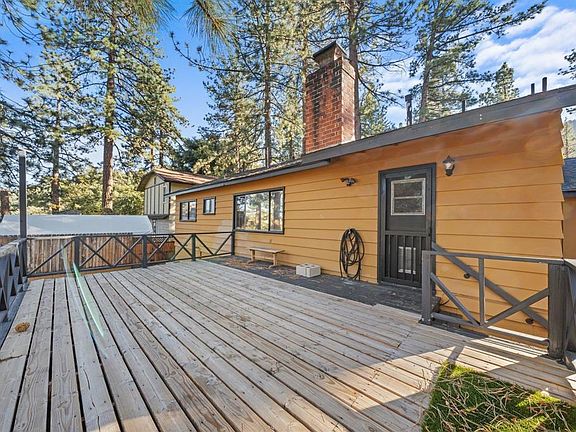 Discover the hidden gem within this charming 2-bed, 1.5-bath mountain retreat, where the real treasure lies in the expansive 7500 sq ft lot. Unleash your creativity and envision the potential of crafting a magnificent back yard oasis or even adding an ADU (Accessory Dwelling Unit). The spacious living room with a captivating rock fireplace and scenic views provides the ideal setting for relaxation.  Step into a sizable dining area and a well-appointed kitchen boasting beautiful cabinetry and granite countertops, elevating the mountain living experience. The large back yard and deck, surrounded by pine trees, invite you to embrace nature and create your own haven.  Perfect for first-time homebuyers seeking tranquility or investors eyeing a lucrative venture, this home offers both comfort and potential for financial gain. Seize the opportunity to transform this mountain retreat into your dream escape or a profitable investment.