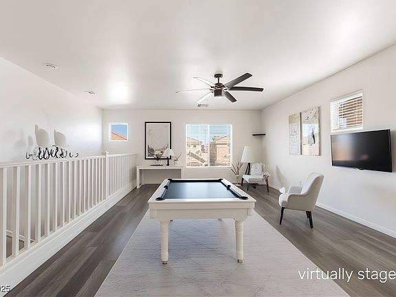 PAID OFF Solar and Water Softener already installed! This charming 3-bedroom home features a downstairs primary suite with a walk-in closet. The home offers separate living and spacious loft with , hardwood flooring throughout. Enjoy ceiling fans in every room and a beautiful kitchen with white cabinet and granite countertops. Located in a gated community with pool, gym, clubhouse, playground, and more.