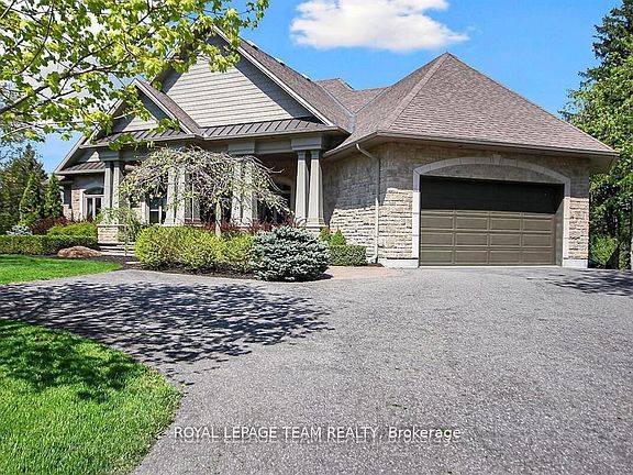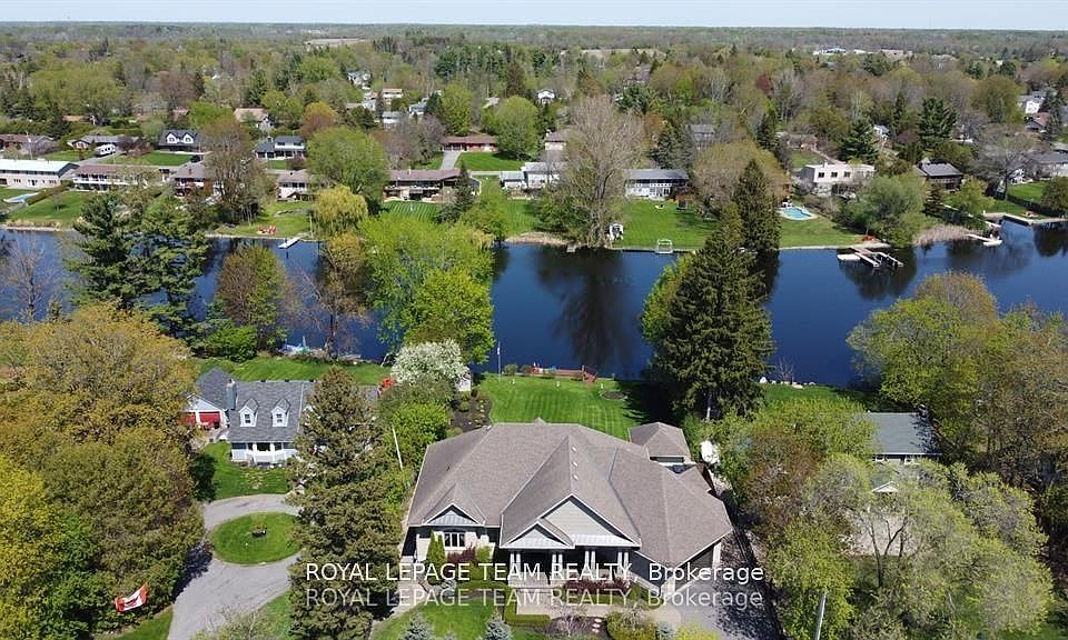 Exquisite Waterfront Estate in the Heart of Manotick on the Rideau River. This custom-built stone bungalow is a masterpiece of craftsmanship and design, nestled on a prestigious waterfront lot in the heart of Manotick. Offering unparalleled luxury and lifestyle, this residence boasts 6-star quality construction & a permanent private dock, with access to 26 miles of scenic boating between locks. Cruise to fine dining, paddle at sunrise, or unwind with a sunset swim all from your own backyard. Step inside to discover timeless elegance and refined finishes throughout. The main level features gleaming oak hardwood, a marble-clad gas fireplace, and gourmet open-concept kitchen adorned with granite countertops & premium fixtures. Two expansive bedrooms on the main floor each offer private spa-inspired ensuites, perfect for indulgent everyday living.The fully finished walkout lower level is equally impressive, featuring two additional bedrooms, spacious and luxurious bathroom. The second designer kitchen offers direct access to an outdoor entertainment area with natural gas BBQ hookup ideal for hosting guests or accommodating extended family in style. The grounds are professionally landscaped and enhanced with an in-ground irrigation system, ensuring lush lawns and pristine gardens. A newly finished stone exterior adds architectural elegance, while a cedar-lined, heated bunkhouse offers a luxurious retreat for guests or a sophisticated studio space. All of this, just steps from Manoticks charming boutiques, award-winning restaurants, and vibrant community life.A lifestyle of waterfront luxury awaits. This is truly a once-in-a-lifetime opportunity.