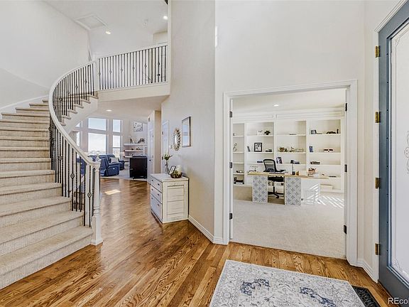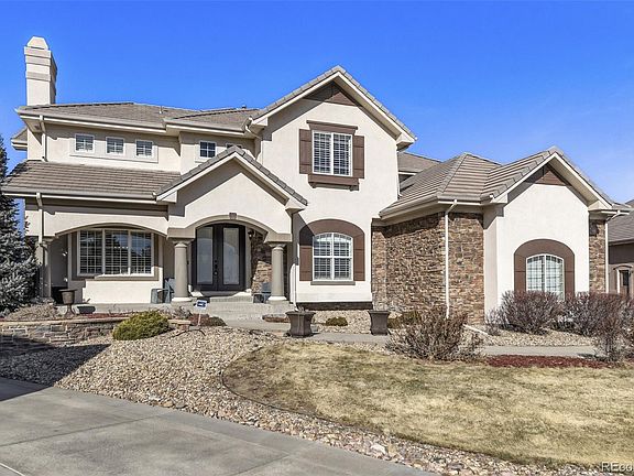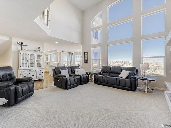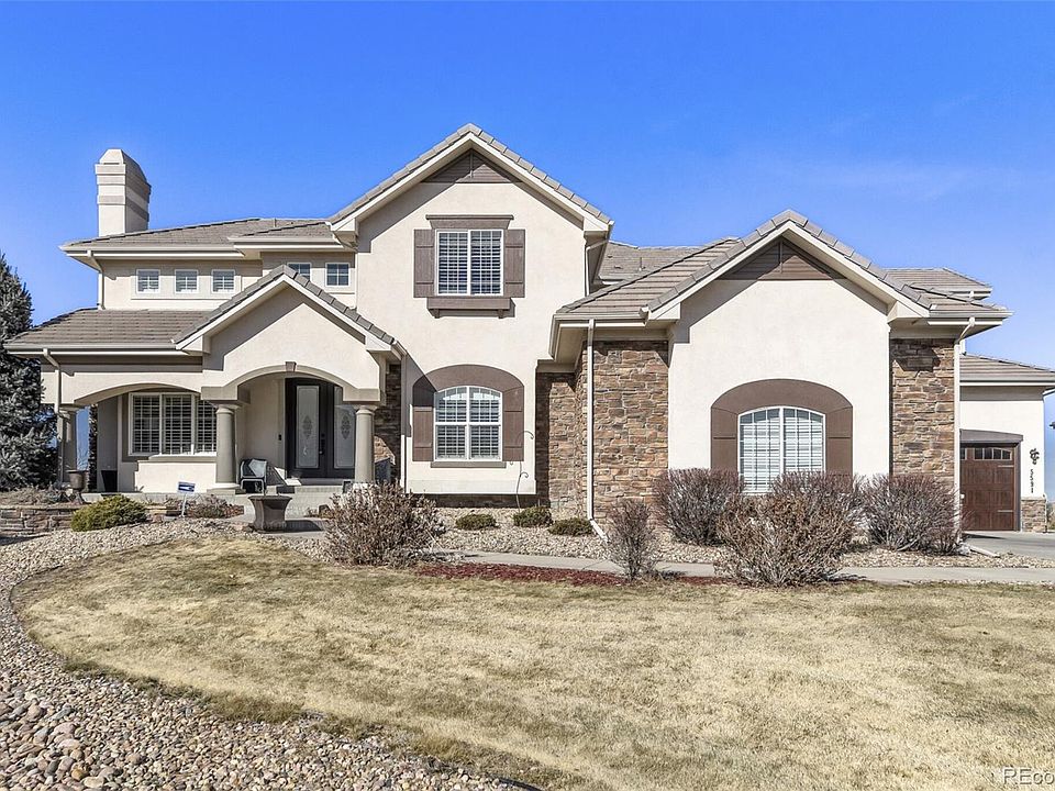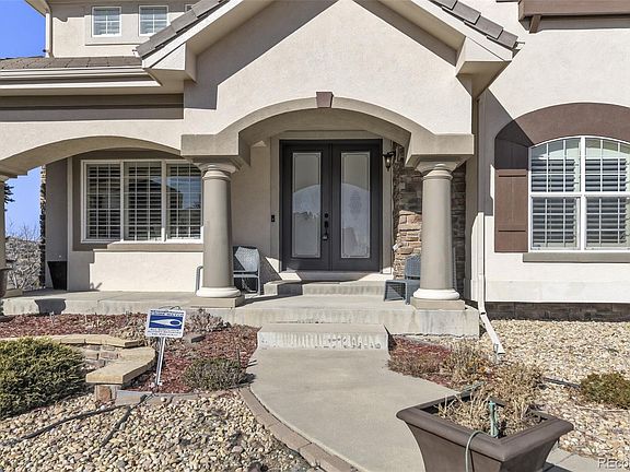 Welcome to this beautifully updated 6-bedroom, 7-bath estate in the quiet, gated community of Vistancia, perfectly positioned between Parker and Castle Rock. This stunning home offers an inviting open floor plan filled with natural light—perfect for both relaxed living and effortless entertaining. The expansive great room with gas fireplace flows seamlessly into the breakfast area and the updated gourmet kitchen, showcasing new quartz countertops, a stylish backsplash, freshly painted cabinets, upgraded fixtures and hardware, elegant lighting, and a premium stainless appliance package. New carpet and professional interior paint throughout create a fresh, modern feel. Upstairs, generous bedrooms each include a walk-in closet and full bath, providing comfort and flexibility for family and guests. The luxurious primary suite offers a cozy fireplace and ample space to unwind. The finished basement is an entertainer’s dream, complete with a wet bar, home theater, game or lounge area, and two additional bedrooms—each with an en suite bath, including a spacious guest suite—perfect for visitors or multi-generational living. Car enthusiasts and hobbyists alike will appreciate the oversized 4-car garage with a built-in loft for extra storage, providing plenty of room for vehicles, gear, and projects. Outdoors, the spacious yard backs to open space and features a new deck, fire pit, and upgraded irrigation system—an ideal setting for gatherings or quiet evenings under the stars. Enjoy direct access to neighborhood amenities and the nearby Cherry Creek Trail, plus close proximity to The Club at Pradera, The Pinery Country Club, and Colorado Golf Club—offering 63 holes of championship golf, three clubhouses, and tennis facilities. Just minutes from downtown Parker, this exceptional home blends privacy, elegance, and convenience. Suburban luxury meets Colorado charm in an incredible place to call home.