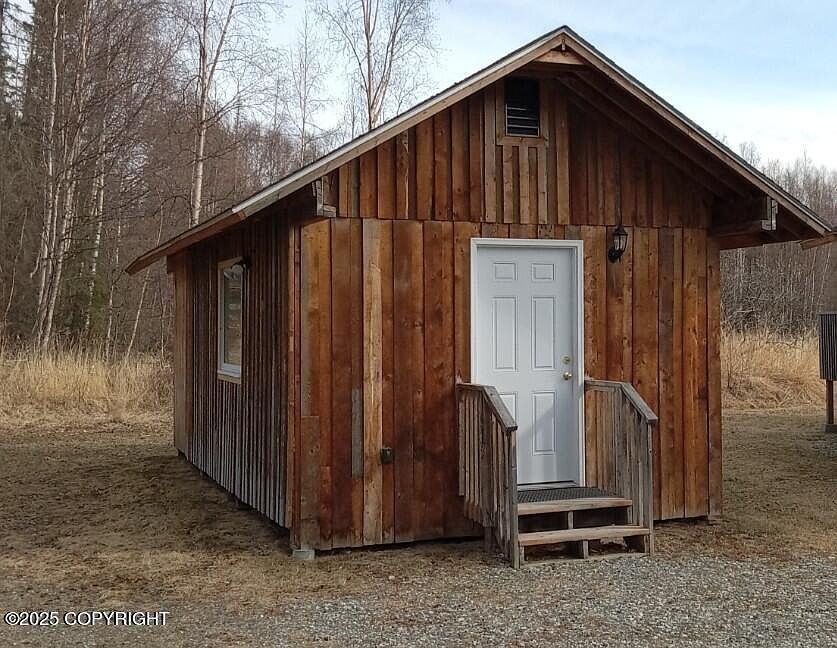 ** Complete Building Ready to Move Year-Round ** Quickly enhance your lot with this ready-to-move cabin or office! Finished w/ wood framing, electrical wiring, insulation, baseboard heat, recessed lights, & outdoor lights! Kitchenette-ready with range &countertop-height outlets! Approx 12x24, total of 280 sqft. Year-round moving estimate: $2.7k for 30 mi from Wasilla! Call for showing.Building only, no land. To be moved by buyer within 30 days of sale. Seller's estimate for moving from Brett's Auto Mover is available upon request. Varies with destination, $2,680 is for up to 30 miles, any time of year, additional $10 per mile plus any extra obstructions.