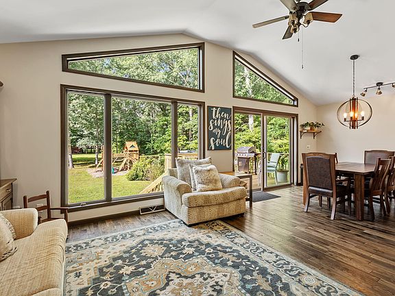 Brand new decksBrand new elevated deckEnormous windowsVaulted ceilingCeramic floored foyerBrick surrounded pellet stoveMature oak trees