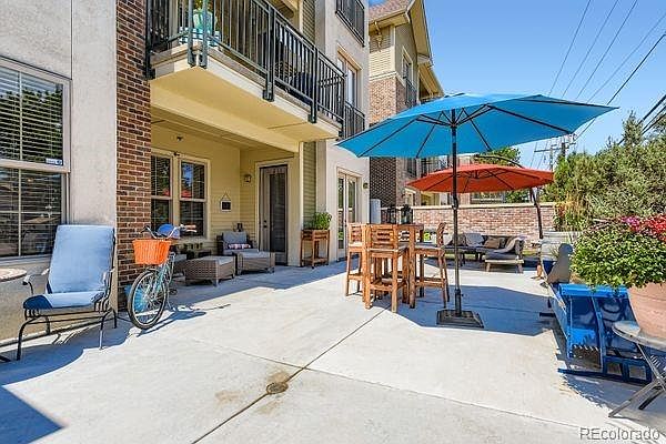Don't miss this rare opportunity to own a luxury condominium just one block from the shops, dining, and charm of Historic Downtown Littleton. This beautifully appointed unit stands out as one of the few with a massive private rear patio—nearly 800 sq ft of outdoor living space. Perfect for entertaining, al fresco dining, grilling, or simply relaxing in a cozy nook, this patio offers the kind of outdoor lifestyle most condos can’t match. Forget tiny balconies or rooftop decks three flights up—step directly from your spacious living area into your own open-air sanctuary. Inside, the open floor plan flows seamlessly from the oversized galley kitchen—complete with slab stone countertops, a gas range, and wood flooring—into a warm living room with a fireplace and a quiet nook leading outdoors. The expansive primary suite features a luxurious five-piece en suite bath and ample closet space. Additional highlights include: Laundry room with extra storage, Secured storage locker, Heated underground garage, High ceilings throughout, Located in a secure, well-maintained building. Enjoy the best of both worlds—walk to dozens of local restaurants, cafes, and boutiques, or unwind in the privacy of your oversized outdoor living space