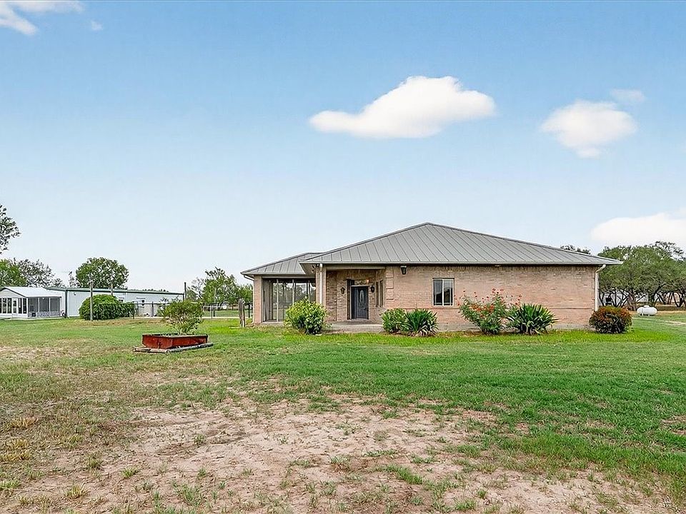 One-of-a-kind property designed for durability, versatility, and comfort on over 5 acres in Sandia, Texas! The main residence is constructed of Fox Blocks Insulated Concrete Forms with reinforced concrete walls, offering exceptional energy efficiency and storm resistance. A 50-year galvanized metal roof, hardy board soffits and fascia, and all-tile flooring throughout provide lasting quality. Inside, the open floor plan features a split-bedroom arrangement, ideal for privacy and functionality. The chef’s kitchen is complete with a center island, gas cooktop, and an abundance of storage. Additional highlights include a central vacuum system, water softener, water filtration system, propane tank, water well, and a convenient half bath that services the pool area—perfect for entertaining. The 752 sq. ft. additional dwelling unit comes fully equipped with appliances and a screened-in porch, ideal for guests. Outdoors, enjoy the Fiberglass Viking saltwater swimming pool with concrete decking and turf surround. The property also includes 4 detached carports, RV hookups (50 amp & 30 amp with water and sewage discharge), and space for an additional RV or trailer. A multi-use outdoor range with berm and protective cover adds another unique feature, while a fenced livestock pen and four poultry houses with power and water provide endless opportunities. Car enthusiasts and hobbyists will love the 900 sq. ft. detached 3+ car garage/metal building with a climate-controlled bonus room and extensive storage. An electric entry gate secures this fully fenced property, offering peace, privacy, and no HOA. Conveniently located just 15 minutes from shopping, dining, and medical facilities in Calallen, this exceptional property on over 5 acres is truly a rare gem waiting to be discovered. The search is over, make this yours today! ((Be sure to view the Virtual tour to get access to more photos of the property))