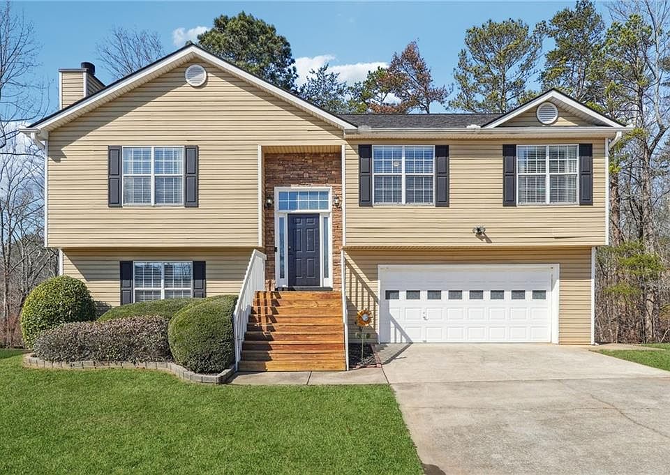 SHOWINGS BEGIN MARCH 1 - Welcome to your dream home nestled in a serene cul-de-sac within the coveted Flowery Branch school district. This incredible split-level residence boasts 4 bedrooms and 3 bathrooms, with the convenience of a master suite on the main level. Marvel at the elegant granite countertops adorning the kitchen, complemented by rich stained cabinets and a stylish backsplash. As you step into the kitchen, you'll appreciate the vaulted ceilings and the seamless integration of modern technology, including a Bluetooth-enabled garage door opener that can be effortlessly controlled via a convenient app on your smartphone. Prepare to be captivated by the picturesque views of the neighborhood's scenic waterfalls from your kitchen window, while the expansive back porch offers the perfect setting for relaxation and outdoor entertaining amidst the tranquil wooded backdrop. Immerse yourself in the welcoming atmosphere of this wonderful swim community, complete with a clubhouse for gatherings and recreation. Don't miss the opportunity to make this exceptional home yours—it's a true must-see and won't remain on the market for long! Newer Roof Newer HVAC and Newer Water Heater. No Rental Restriction!