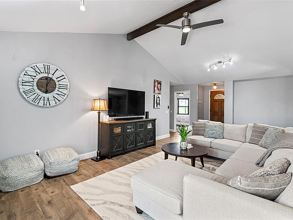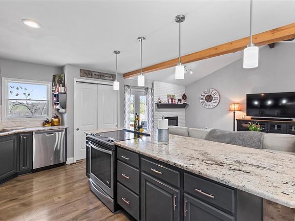 Magnificent ranch style home in Oakville schools offers the open, flexible floor plan & entertaining space you've been searching for! The well designed kitchen features granite topped cabinetry, stunning backsplash, stainless appliances & room for guests to sip, chat & stay connected at the center island & adjacent dining room. The soaring vaulted ceiling with exposed wood beam crowns the Great Room & is warmed by the WOODBURNING fireplace! Unwind in your tranquil primary bedroom suite with stunning private bath & walk-in closet. Three additional roomy bedrooms, an updated bath & main floor laundry complete the main level. The walkout lower level with built-in bar & full bath is perfect for movie, game nights & sleepovers. Plenty of room to relax out back in the fully fenced yard offering multi-level entertaining~ deck, covered patio & pool. Bonus attached shed & ample storage space! Explore Cliff Cave Park overlooking the Mississippi River with hiking & biking trails! Hot tub stays!