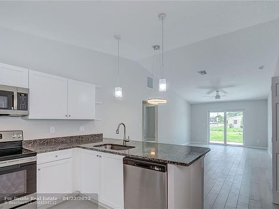 A MUST SEE! BRAND NEW CORNER HOME BUILD IN 2023, 3 BED, 2 BATH, 1 CAR GARAGE. A NICE FRONT PORCH INVITES YOU IN, WHERE YOU WILL FIND BEAUTIFUL PORCELAIN FLOORS, NICE KITCHEN CABINETS WITH GRANITE COUNTER TOPS. LOVELY DESIGN WITH HIGH CEILINGS IN THE MAIN LIVING AREA AND MODERN LITHING FIXTURES. EVERYONE WILL HAVE PRIVACY IN EACH BEDROOM AS THEY ARE LOCATED AT THE 3 CORNERS OF THE HOUSE. NO NEED TO WORRY DURING HURRICANE SEASON WITH YOUR IMPACT WINDOWS AND METAL ROOF AND YOU WILL HAVE LOWER INSURANCE AND ENERGY COSTS. THE HUGE BACKYARD IS OPEN TO YOUR IMAGINATION AND WITH NO HOA YOU HAVE THE FREEDOM TO DO AS YOU PLEASE. A NOTE THAT THE FUTURE PROPERTY TAXES WILL BE BASE ON THE PURCHASE PRICE.