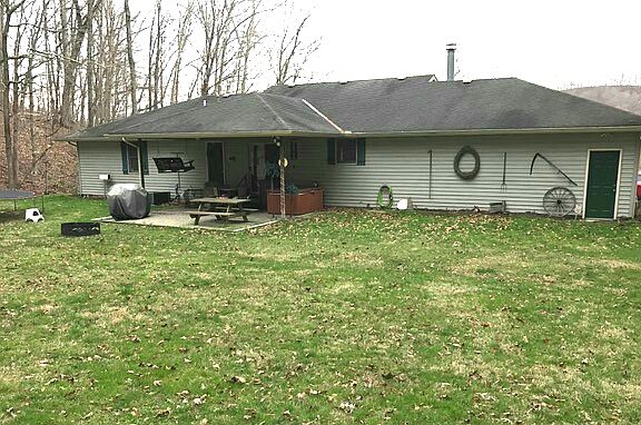 BEAUTIFUL RANCH. OPEN LIVING ROOM/DINING ROOM/KITCHEN WITH VAULTED CEILINGS. FULL BASEMENT WITH POSSIBLE 4TH BEDROOM. 25X40 POLE BARN BEHIND HOUSE, PLUS ADDITIONAL POLE BARN WITH EFFICIENCY APARTMENT ON 4 ACRES ACROSS FROM HOUSE. FREE GAS TO HEAT FROM GAS WELL.