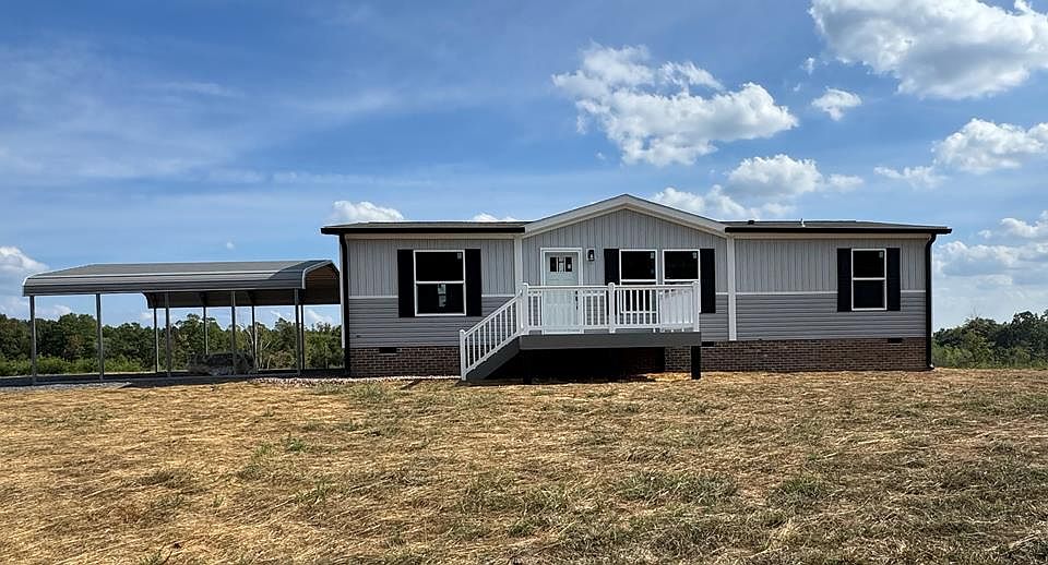 Escape to country living in this brand new double-wide home on a generous 1-acre lot. This stunning split-bedroom floor plan offers ultimate privacy, with the primary bedroom secluded on one side & additional bedrooms located on the opposite end, separated by the expansive open-concept living area. Step inside and discover a light-filled, airy great room flowing seamlessly into the modern kitchen & dining spaces. The chef's kitchen boasts stainless steel appliances, a pantry, a coffee bar, & a versatile island for casual meals or entertaining. Enjoy the tranquility of your outdoor space on either of the two 10x12 composite porches – one in the front & one in the back, perfect for relaxing evenings or morning coffee. The property also features a convenient double-car carport.