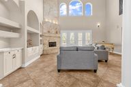 - Built-in Features, Ceiling Fan(s), Chair Rail, Crown Molding, Eating Space In Kitchen, High Ceilings, Open Floorplan, Primary Bedroom Main Floor, Solid Wood Cabinets, Split Bedroom, Stone Counters, Thermostat, Tray Ceiling(s), Walk-In Closet(s)