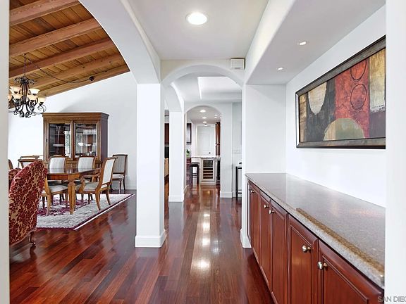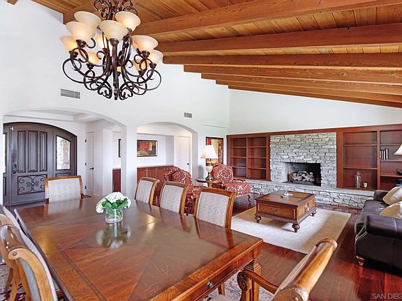 This stunning, single-level home west of I-5 in the prestigious La Jolla Palisades neighborhood, offers three spacious bedrooms and three baths. Natural light floods the interior through large windows and glass doors, highlighting the beautiful wood-lined and beamed vaulted ceilings and elegant arched doorways. The expansive backyard features a large grassy area and a spacious paved patio ideal for outdoor entertaining embodying the indoor-outdoor lifestyle. Additionally, a separate structure serves as an office or storage unit, providing versatile space for work or hobbies. Don't miss your chance to experience this incredible property!