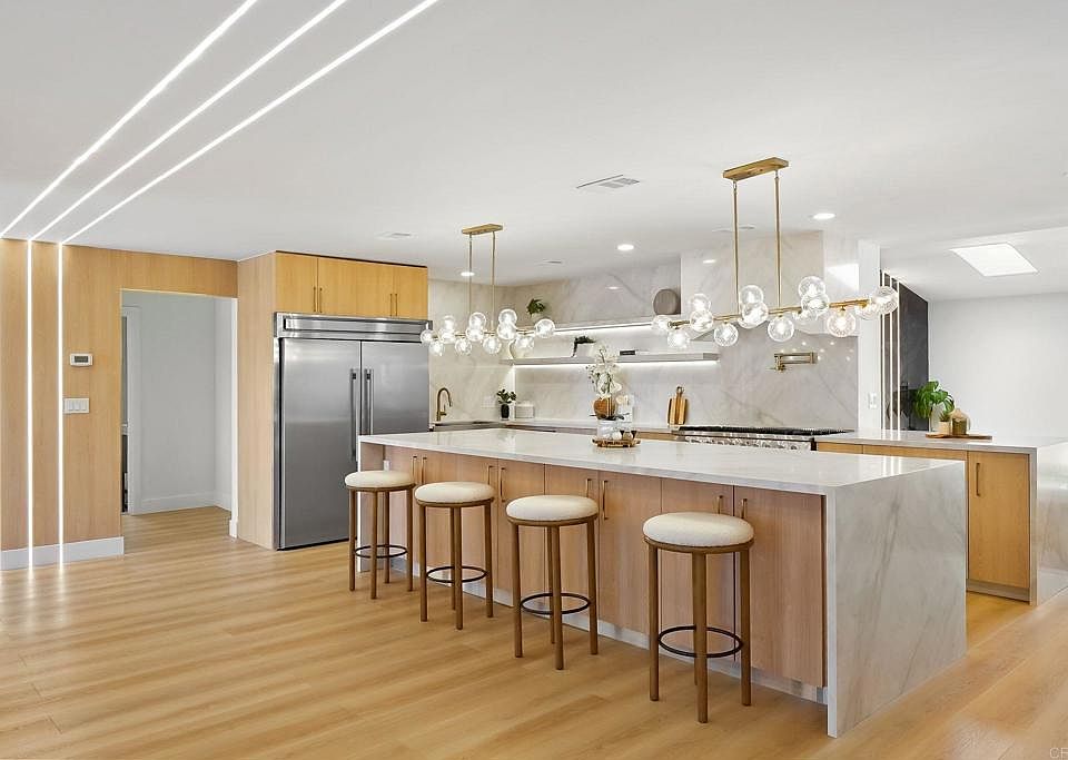 Commercial-size refrigeratorGold trimmingsGold faucetsAbundant natural lightLuxury stone finishesSpa-like finishesOversized flooring
