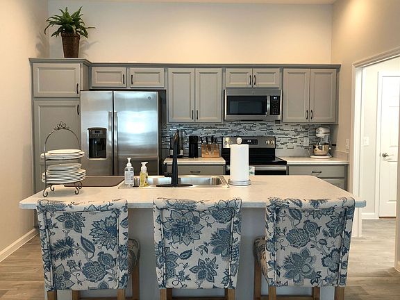 AVAILABLE AVAILABLE APRIL 2025! Ready for your next vacation? Come and relax in this beautiful 3/2 home nestled in the neighborhood of Bradford. Located in the southern area of The Villages, close to Aviary Recreation Center, and minutes from the Brownwood Town Square. The home is very inviting and spacious with the open living concept and highlighted with the bright modern colors and decor. The kitchen is just as impressive with stainless steel appliances and fully equipped with all the essentials. The Master Bedroom has its own en suite with double sinks, a walk in tiled shower, and walk in closet. The second bath is just as impressive with a tub/shower combo, easily accessible between the other two bedrooms. No pets, No smoking policy. Tenant Application required. 4-seater Golf Cart available for use. Seasonal Rates Vary, please contact the office for pricing.