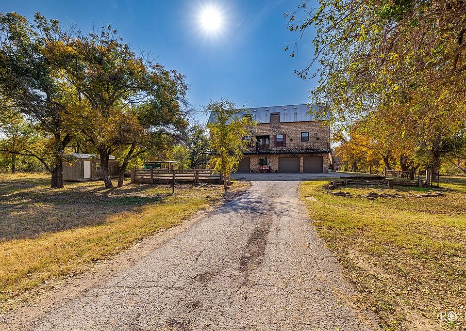 RARE find on the Concho River just east of San Angelo. This 4-bedroom, 3.5 bath home is packed with character and charm, offering a unique blend of rustic stonework, striking architectural lines, and wide-open spaces that make it truly unforgettable. Step inside and experience an inviting layout with generous natural light, cozy living areas, and plenty of room for hosting family and friends. The home's elevated wraparound balcony provides beautiful views of the property, perfect for morning coffee or relaxing evenings overlooking the river. Downstairs, you will find a spacious 4-car garage, storage areas, and a flexible covered space, ideal for a workshop, or outdoor entertainment. The property is dotted with mature trees, open pasture, and river access that's perfect for fishing, kayaking, or simply enjoying the view of your private stretch of the Concho River. Whether you're looking for a full-time residence, or a weekend getaway, this property offers privacy and character.