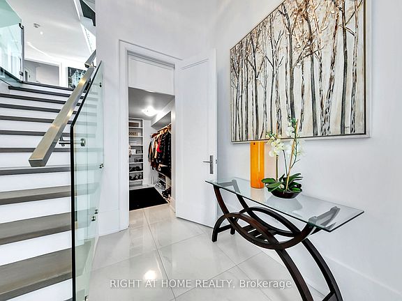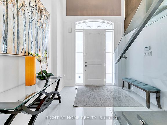 Timeless elegance meets exceptional craftsmanship in this stunning residence, offering over 5,000 SQF of meticulously finished living space. Built just eight years ago, the home is thoughtfully designed for impressive entertaining and outstanding everyday comfort. A breathtaking 17-ft entrance sets the tone from the moment you step inside, with abundant natural light streaming through oversized windows to showcase the home's premium finishes. The foyer features a striking custom panel wall, soaring ceilings, and open sightlines that create an unforgettable first impression.The main level offers 10-ft ceilings, elegant crown moulding, pot lights, and a well-planned layout that blends openness with functionality. Principal rooms are luxurious yet inviting, including a living room enhanced with a custom panel wall and large windows that fill the space with natural light.At the heart of the home is the chef-inspired kitchen, featuring an oversized island, double pull-out pantry systems, tall custom doors, premium cabinetry, built-in wine hutch, and two impressive wine displays. Built-in speakers in the kitchen, living and dining rooms elevate both everyday living and entertaining. The adjoining family room includes a rough-in for surround sound, allowing for a future cinematic experience.The upper level features 9-ft ceilings and four generously sized bedrooms, each offering excellent closet space, including multiple walk-in closets. The primary suite stands out with a spacious walk-in closet, double-sided gas fireplace, and a spa-like ensuite with heated floors and refined finishes.The fully finished basement with 12-ft ceilings provides exceptional versatility, showcasing a self-contained unit complete with a modern kitchen and rough-in laundry-ideal for multigenerational living, guests, or potential rental income. Additional storage further enhance the home's practicality, while the private backyard with no neighbour at the back complete this outstanding offeriing.