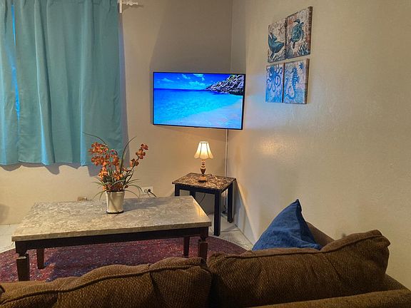 Located 7-9 minutes from Sunny Isles Shopping Center, Juan F. Luis Hospital, and Limetree, this unit features a comfortable outdoor deck. Queen sofa bed for guests in living room. Courtesy wifi onsite. Off-street parking provided.