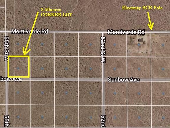 Great opportunity to own land with beautiful panoramic views all around!! Property is within 5 miles of the Downtown Rosamond and also with 5 miles of Downtown Mojave. This is a corner lot with 2.49acres of Buildable flat land. Electricity close by. Priced To Sell!