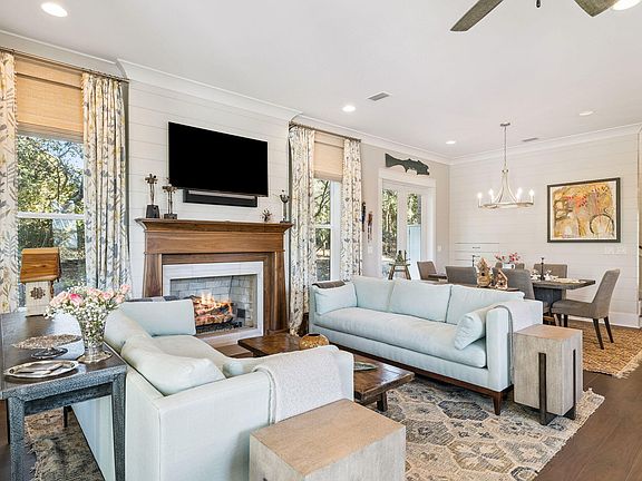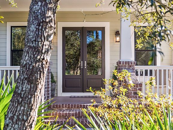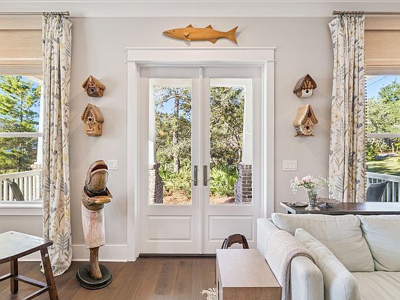 Tucked away on a quiet cul-de-sac, surrounded by magnolias and live oaks, this custom-built home seamlessly blends timeless craftsmanship with modern comfort. 5 minute walk to Santa Rosa Golf Clubhouse & tee off, less than a mile to the beach, and minutes to Grand Boulevard, this thoughtfully designed homes offers the ideal combination of serenity and convenience.Inside, you'll find spacious open living area with 10' ceilings, rich walnut wood floors, designer lighting, and wind-rated windows and doors throughout. The gourmet kitchen features quartz countertops, custom cabinetry with pull-outs, a deep double sink with filtered water, and a gas fireplace nearby that anchors the living area with warmth and charm. The primary suite is a true retreat, offering French doors leading to a screened porch, dual walk-in closets with built-ins, and a luxurious spa-style bath featuring marble finishes, a freestanding soaking tub with jets, and a zero-entry glass shower.