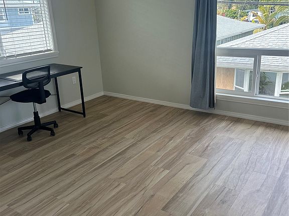 Now available is this beautiful, 5-bedroom, 3-bathroom home located in a quiet, family-friendly neighborhood. This move-in-ready property blends modern updates with everyday comfort, featuring brand-new wood flooring throughout, a freshly painted exterior, and sleek black light fixtures in every room. Large windows fill the home with natural light, creating a bright and welcoming atmosphere. The expansive primary suite offers flexible space that can serve as a nursery, home office, or private lounge. A downstairs guest bedroom with a full private bath provides ideal accommodations for visitors or multi-generational living. The home also includes a small, fenced-in yard perfect for children, and an attached garage for added convenience and security. Situated close to schools, parks, and popular local food trucks, this home offers a great balance of peace and accessibility. Don’t miss the chance to schedule your private tour — this one won’t last long!
