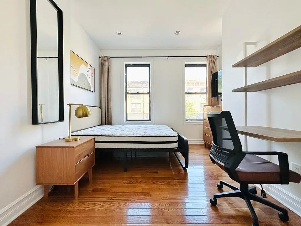 Myrtle Ave #582 - Furnished room, 2 windows, closet, new hardwood floor, in a 4 bedroom, 2 bathroom, recently gut renovated apartment. No exposed brick, just white paint walls. - Trains: L and M. Myrtle-Wyckoff Avenue Subway Station. - Furniture to be included: bed, mattress, closet, bed stand, curtains/shades, desk, chair, sofa, kitchen table. - Washer and dryer inside the apartment. - On the same block as cafe's, restaurants, gym (Blink Fitness), bars. - Utilities: $165 per month (internet, gas, heat, hot water) - Location: Myrtle Ave and Cornelia St. - There is a one-time room cleaning and administration cost of $125 - Minimum 1 month - Maximum 1 year - No Smoking Inside The Unit - Not Pets Allowed - Utilities: $165 per month (Internet, gas, heat, hot water). - There is a one-time room cleaning and administration cost of $125