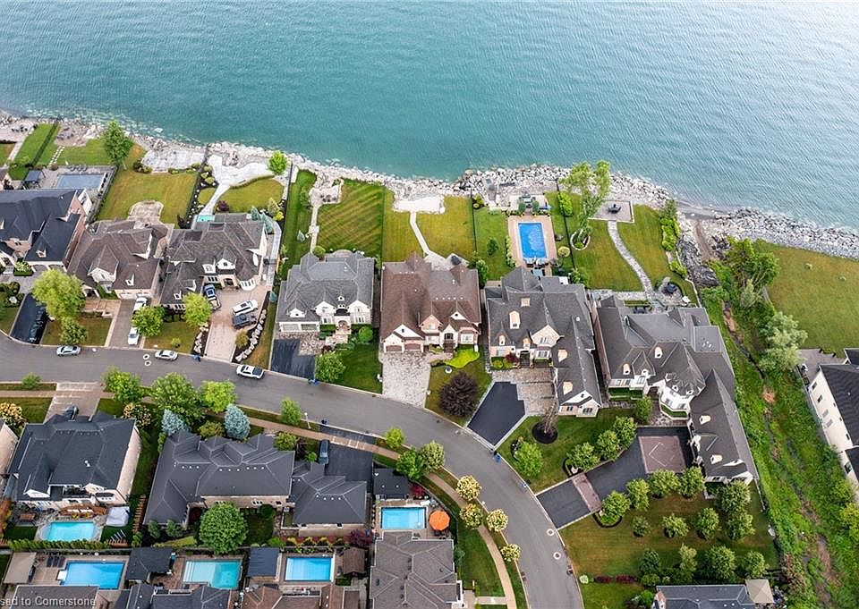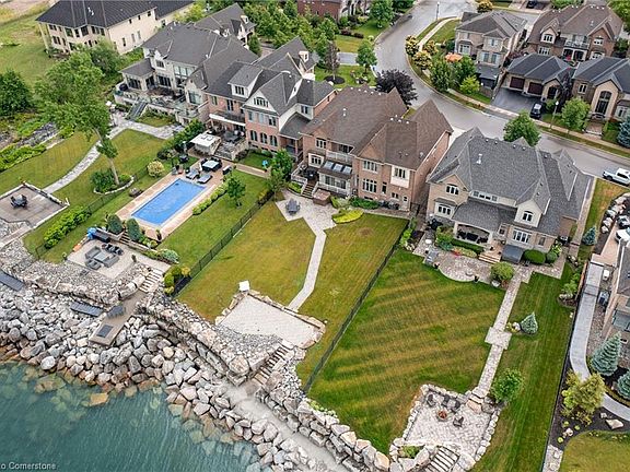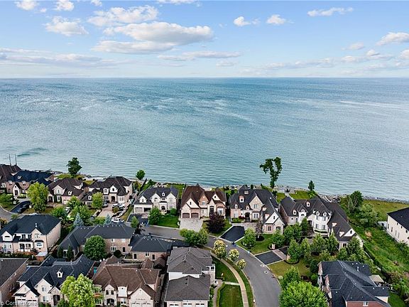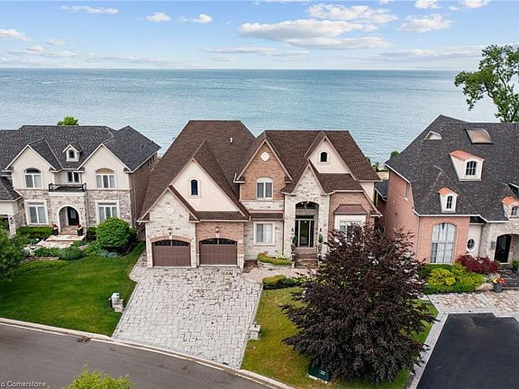 Welcome to 56 Aquamarine Drive — a luxurious 4700 sq ft custom waterfront home with direct lake access, private elevator, and a triple car garage with vehicle/boat lifts. This 4 bed, 6 bath masterpiece offers high-end finishes throughout, including a gourmet Viking kitchen, grand dining room, sunroom with skylights, and multiple fireplaces. Each bedroom features its own ensuite, ideal for multigenerational living. The primary suite offers a lakeview balcony, spa-like bath, and fireplace. Enjoy a 14’ swim spa, beautifully landscaped yard, new seawall, and upper/lower patios overlooking the lake. Located on a quiet court near marinas, highways, shopping, and Niagara wine country. Luxury Certified.