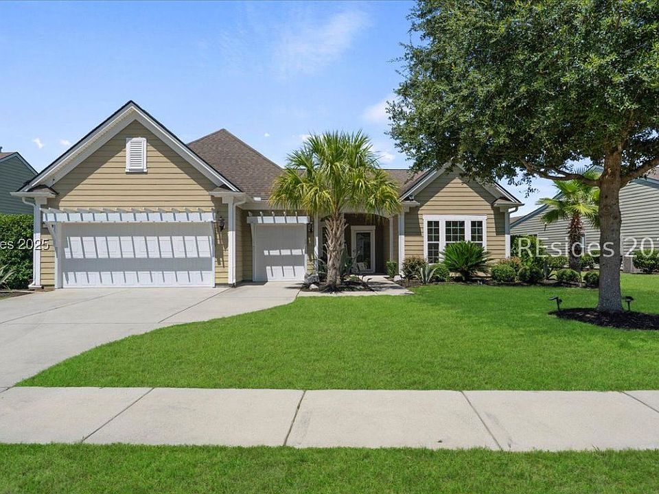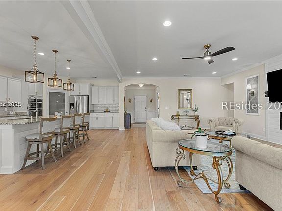Embrace timeless Lowcountry charm in this beautifully crafted single-story home, ideally located in the sought-after Baynard Park community. Offering 3 bedrooms + dedicated office and 3 full baths, this residence blends relaxed sophistication with modern comfort. Engineered hardwood floors flow throughout an open, light-filled layout, while a chefs kitchen connects seamlessly to a shiplap-accented Great Room and versatile Carolina Room. The spacious owners suite provides a private retreat, and a screened porch with an expansive patio overlooks tranquil lagoon views perfect for entertaining or unwinding. A finished two-car garage with a golf-cart bay adds practicality. Baynard Park residents enjoy a pool, fitness center, walking trails, and courts for tennis, pickleball, and basketball. With excellent nearby schools and easy access to Savannah, Beaufort, Hilton Head Island, and Bluffton's historic district, this home offers both elegance and convenience. Owner is a SCREA.