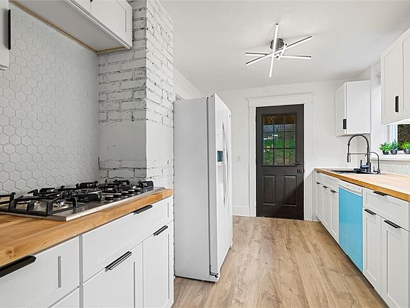 Private yardFinished basementStylishly updated bathroomsBrand-new kitchenCovered porch