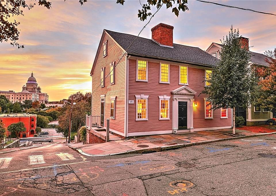 The Jabez Gorham House c1792 is one of the most photographed homes on Benefit Street's Mile of History. Perched on the west side of the street with views to the statehouse, this lovely home will excite everyone with a penchant for historic preservation. Step into the front foyer with a period staircase. To the right is the dining room with a fireplace, classic 12 over 12 windows and wide plank floors which continue throughout the home. To the left of the entry is a living room with a fireplace and hand stenciled walls. Step from each into a classic keeping room with a fireplace, library and small study. Off the back of the house is an addition with a modern kitchen, with chef's grade appliances, stone counters and freshly painted wood cabinetry. An atrium door steps out to a city facing deck with panoramic views of the Providence skyline. A full bath completes this floor. Upstairs are three charming bedrooms presently used as 2 bedrooms and a sitting room, each with a fireplace. There are 1.5 baths complimenting the sleeping quarters. Down the backstairs to the Garden level is a full walk out with a legal apartment. Currently used as guest quarters with a bedroom, full bath and sitting room with a fireplace. A laundry room and utility area are located to the back of the suite. Step out to the cobblestone parking court with space for 2 cars. Granite pavers form the sidewalk at the front of the house. If you love antique homes, you won't want to miss this one!